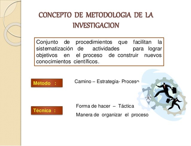 Los métodos de investigación son aquellos que conducen al logro de conocimientos. Concepto de investigación la investigación es un proceso intelectual y experimental que involucra un conjunto de métodos que se utilizan sistemáticamente para investigar un problema o tema y ampliar o desarrollar su conocimiento, ya sea ciencia, humanidades, sociedad y tecnología. La metodología de la investigación busca optimizar las estrategias para el análisis de la efectividad de los métodos de acción.