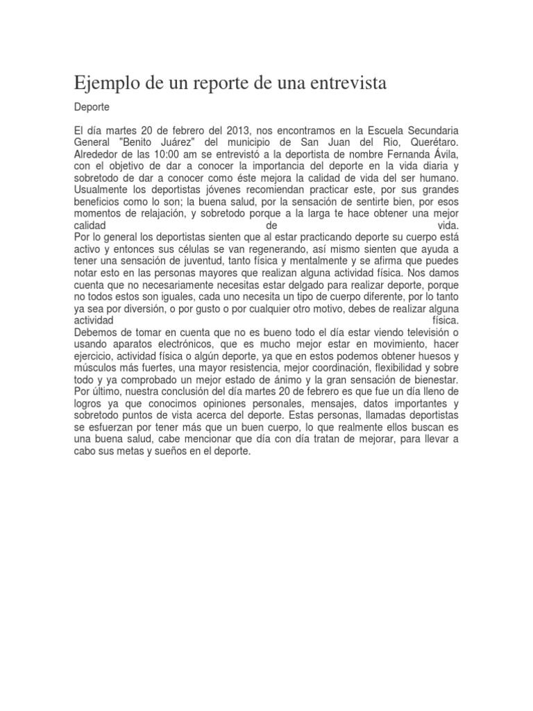 Ejemplo De Un Reporte De Una Entrevista | Pdf | Deportes | Bienestar