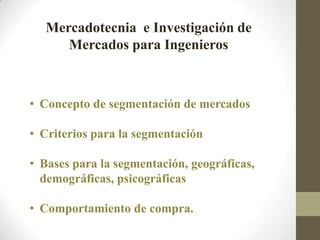 Tener 3 o más inmuebles registrados; Los criterios más comunes para segmentar son los siguientes: Criterios para la segmentación aunque los mercados pueden segmentarse.